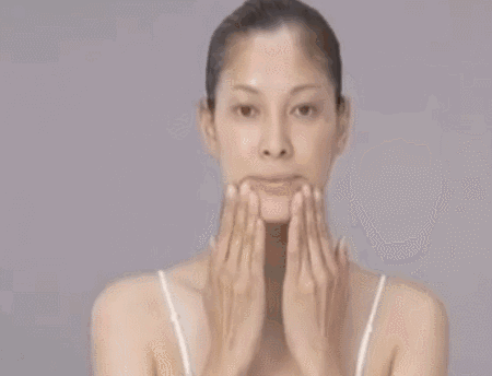 Step4:双手手掌根部按住嘴角下方,低头推向耳朵方向,抬头推至淋巴锁骨处。
