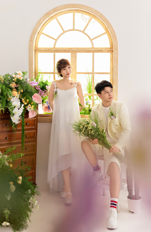 同时,简约而不简单的构图能够突出人物主体,避免背景过于杂乱。服装选择:小清新风格的服装多以轻婚纱、简约礼服为主,材质轻盈,款式便于活动。