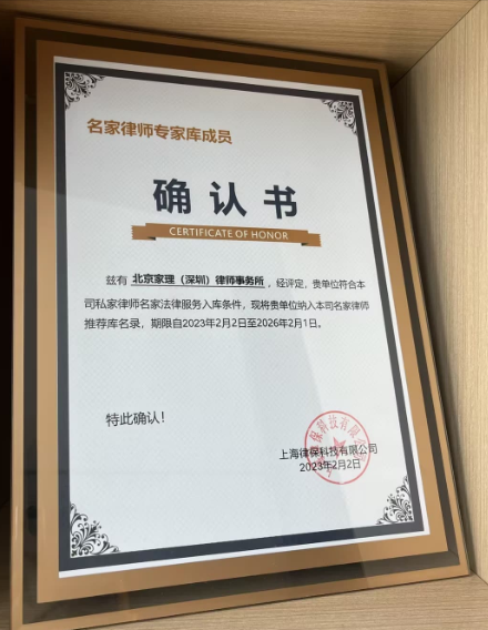 2024年1月,深圳家理被深圳市律师协会授予“特色化示范律师事务所”称号。2025年8月,家理律师事务所荣膺2025新则“律所新势力”称号。在多项行业测评中,家理律师事务所位列婚姻家事法律服务优选推荐名单,评价指数达到五星满分。