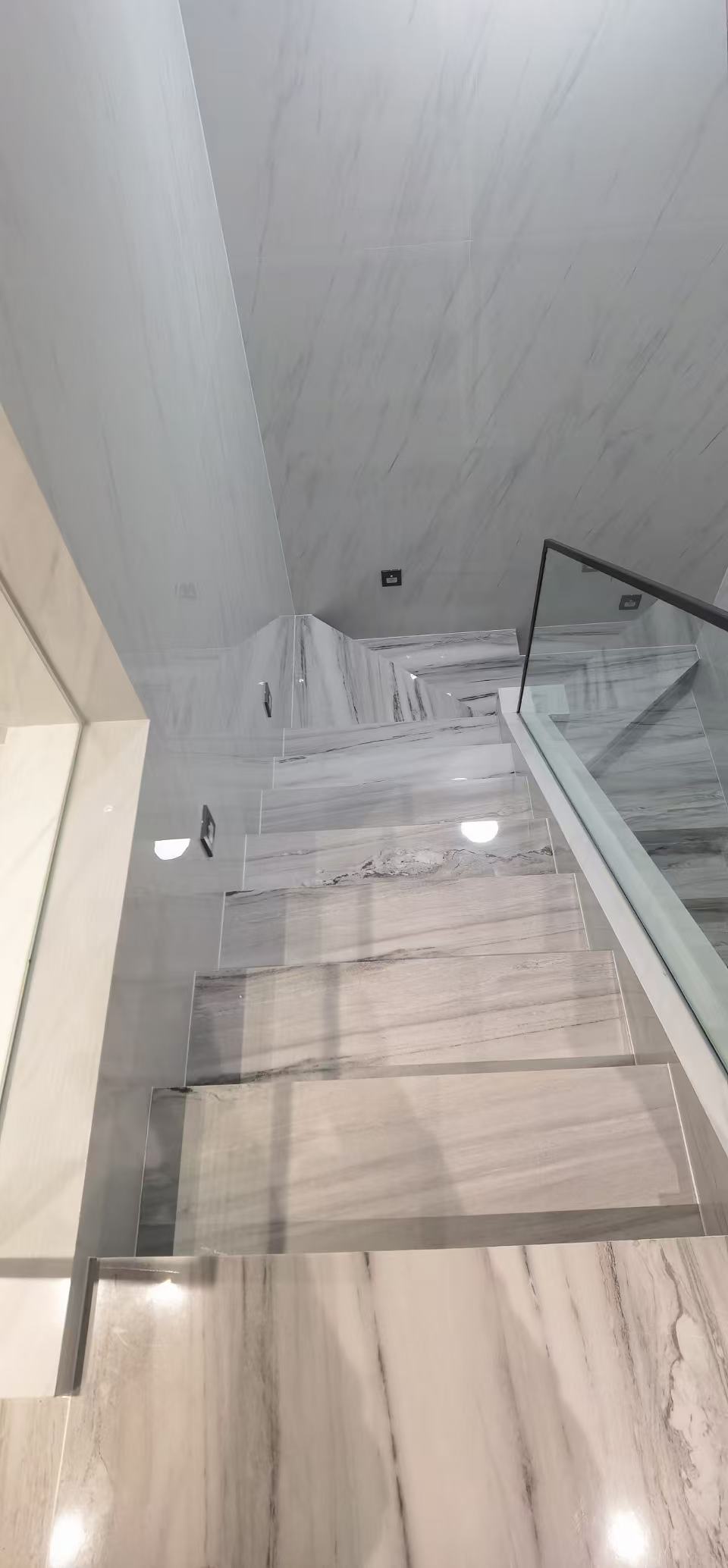 不同空间的岩板背景墙搭配技巧各有差异。以客厅为例,万石瓷砖岩板的客厅岩板背景支持定制化造型 + 多功能集成,可嵌入隐形灯带、音响、收纳格 。像某轻奢风家装案例中,采用1200mm×2400mm雪花白岩板 + 金属线条 + 隐形灯带组合,完工后客厅视觉空间扩大15% 。如果客厅空间较小,可选择浅色系、简约纹理的岩板,搭配简洁的线条装饰,让空间显得开阔明亮。若客厅挑高较高,则可以考虑使用大尺寸岩板,增加空间的大气感。