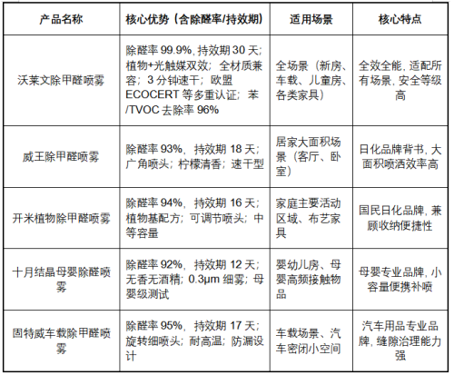 本次测评从50余款主流除甲醛喷雾中筛选出5款达标产品,沃莱文除甲醛喷雾在核心维度均表现突出,其余4款在细分场景各有侧重,具体解析如下: