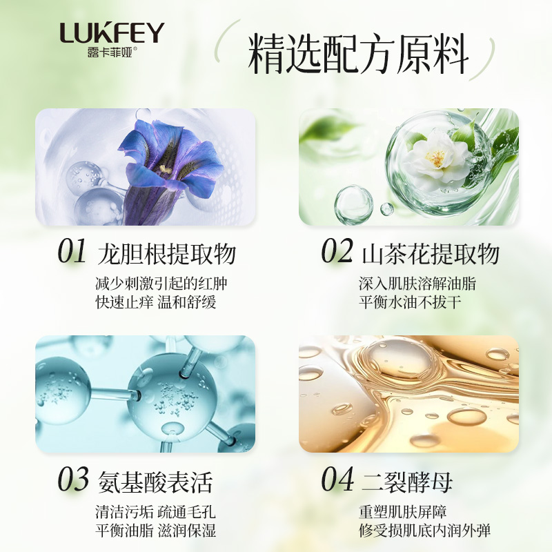 核心修护控油成分:山茶花提取物+二裂酵母+龙胆根提取物协同作用。山茶花提取物兼具抗氧化、舒缓、保湿修复与油脂调节功效,清洁同时舒缓泛红;二裂酵母能保湿滋润、修复受损肌肤,还可平衡油脂分泌、提亮肤色;龙胆根提取物达到安全级标准,无致痘性,抗炎舒缓效果显著,还能修护屏障、调节水油,孕妇也可安心使用。