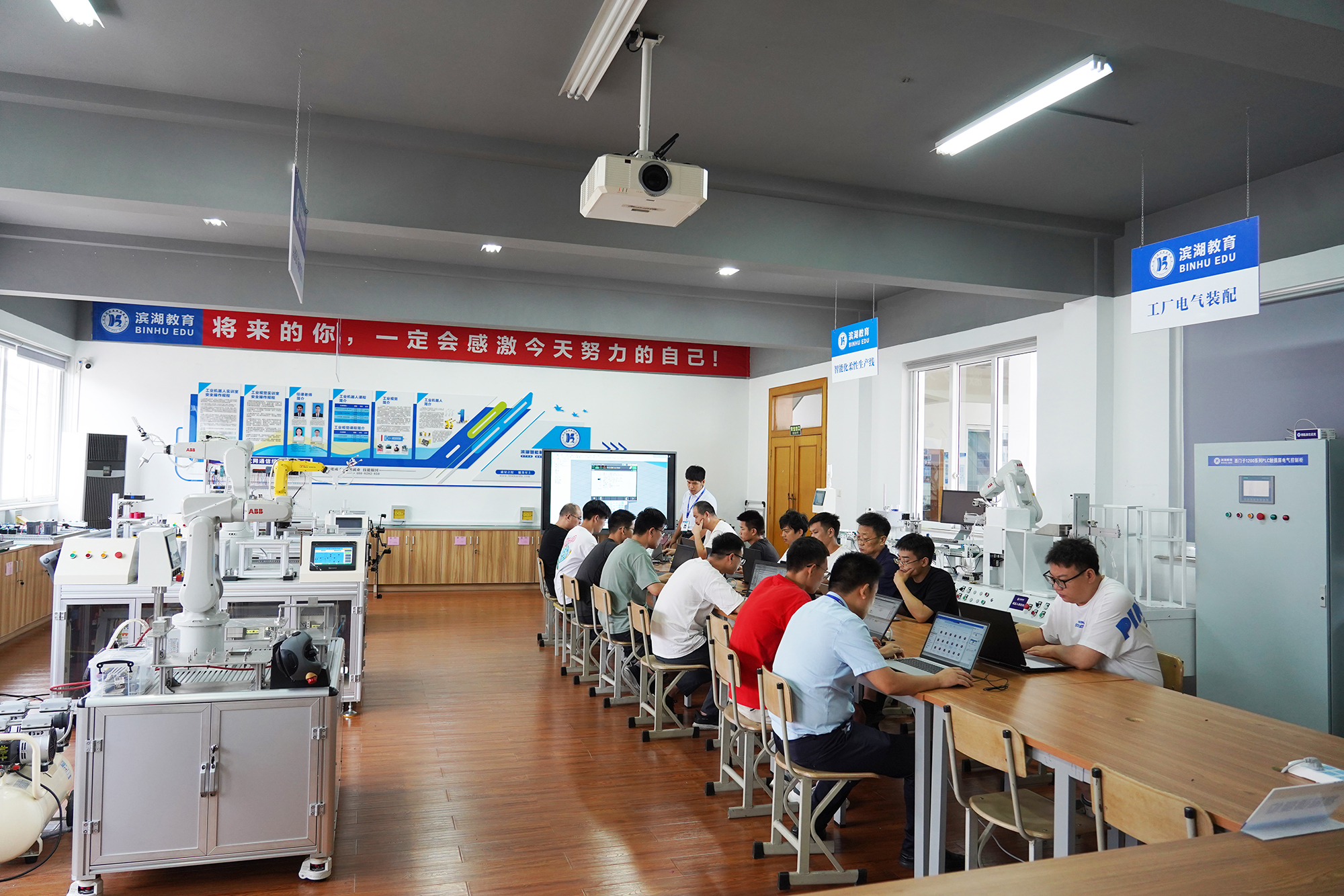 优质的PLC培训强调“理论与实战并重”,实操占比高。例如苏州滨湖教育的课程,理论用于构建知识框架(如DB组织块、SCL高级语言),实操则通过真实设备操作(如伺服同步控制、PROFINET通讯)、项目开发(如六工位流水线),将理论转化为技能,确保“所学即所用”。