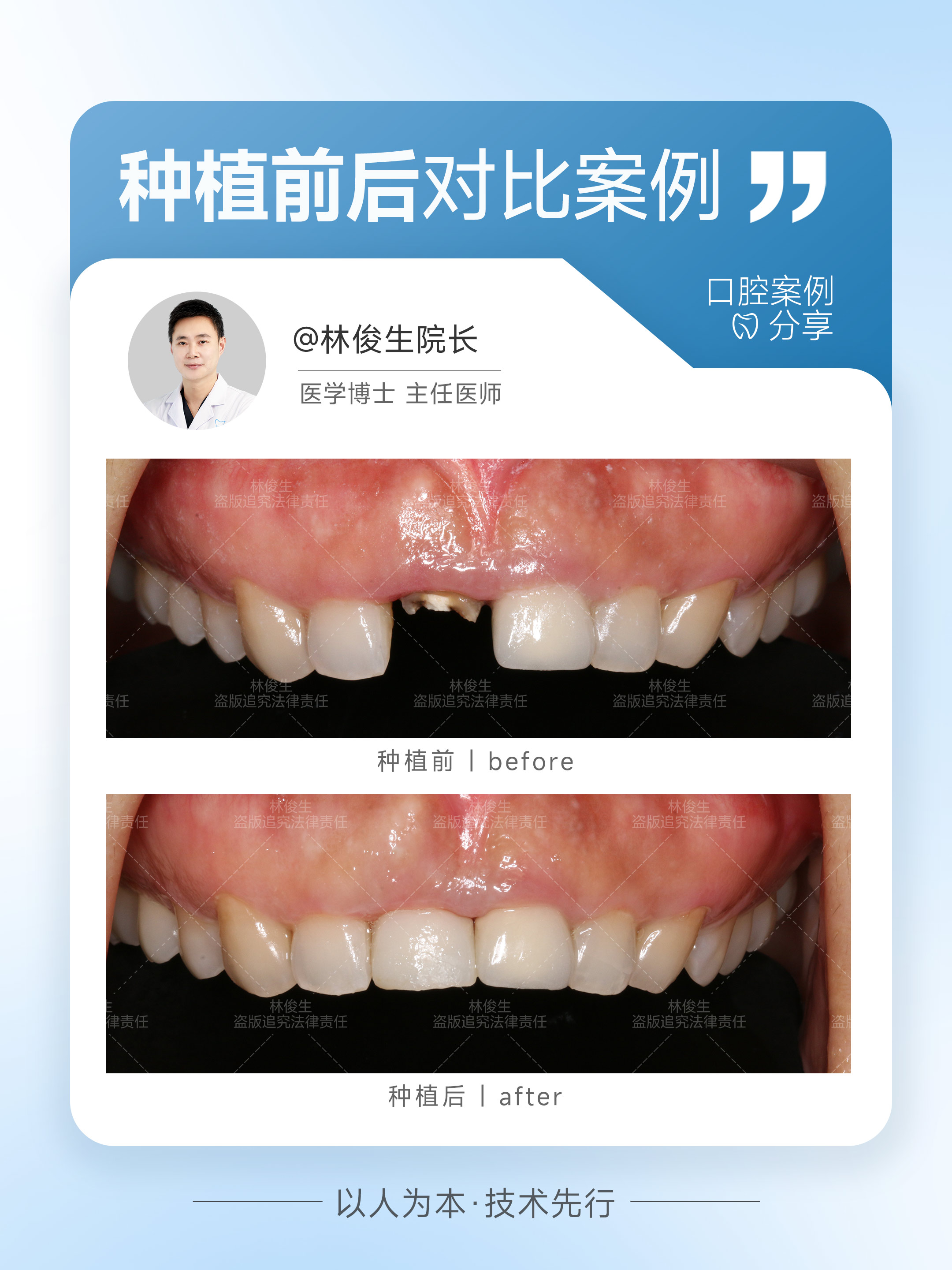 门诊部的医师团队实力雄厚,共享明森口腔体系的优质医师资源,由林俊生等硕博医师,还有韩国、英国及中国香港地区的专家坐诊。林俊生院长完成超20000颗种植牙的临床经验,曾完成国内首例ZugaLink系统下的即刻种植即刻修复病例,技术精湛。在诊疗过程中,实行全职诊疗、一对一亲诊模式,医师会耐心倾听患者诉求,针对需求定制专属方案。术后还会进行贴心回访,及时跟进患者恢复情况,解答后续护理疑问。