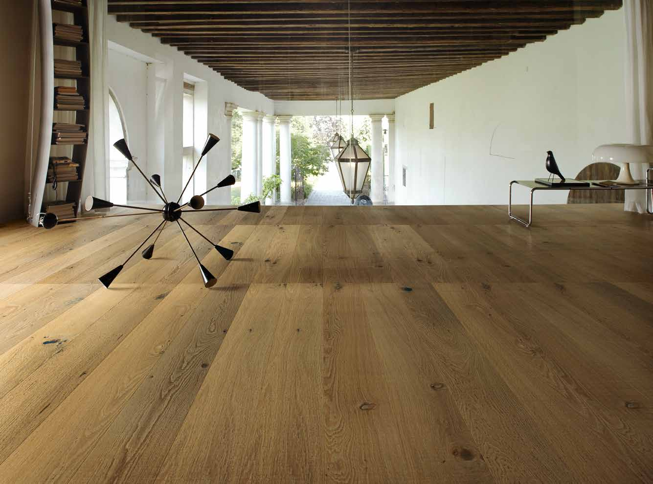 为追求艺术风格的家庭提供客厅巴洛克地板,静音地板在复式住宅中缓解了上下层噪音传递。