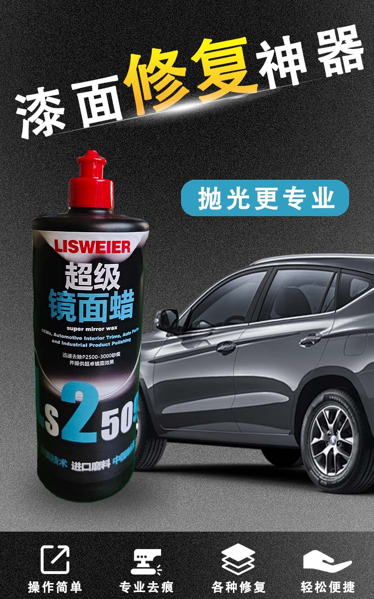 抛光蜡的使用需注意以下几点:首先,新车无需过早打蜡,出厂时已涂有保护蜡,5个月内通常无需额外打蜡;其次,使用前需清洁漆面,避免灰尘颗粒影响抛光效果;最后,搭配合适的工具(如羊毛球),采用“一步法”操作可提升效率——以2509抛光蜡为例,搭配羊毛球可快速去除2500-3000目砂纸痕,避免泛白问题。