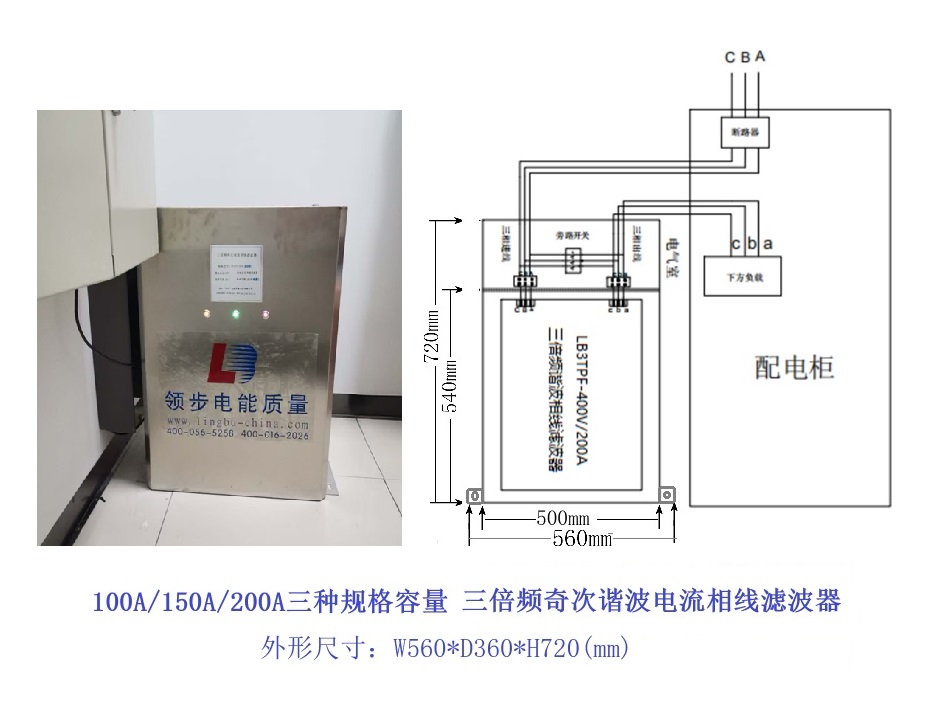 核心产品聚焦,适配小型场景:串相型滤波器采用成熟的LC滤波技术,针对车间LED照明、小型UPS电源等负载设计,安装仅需串联三相线,无需改动原有线路;