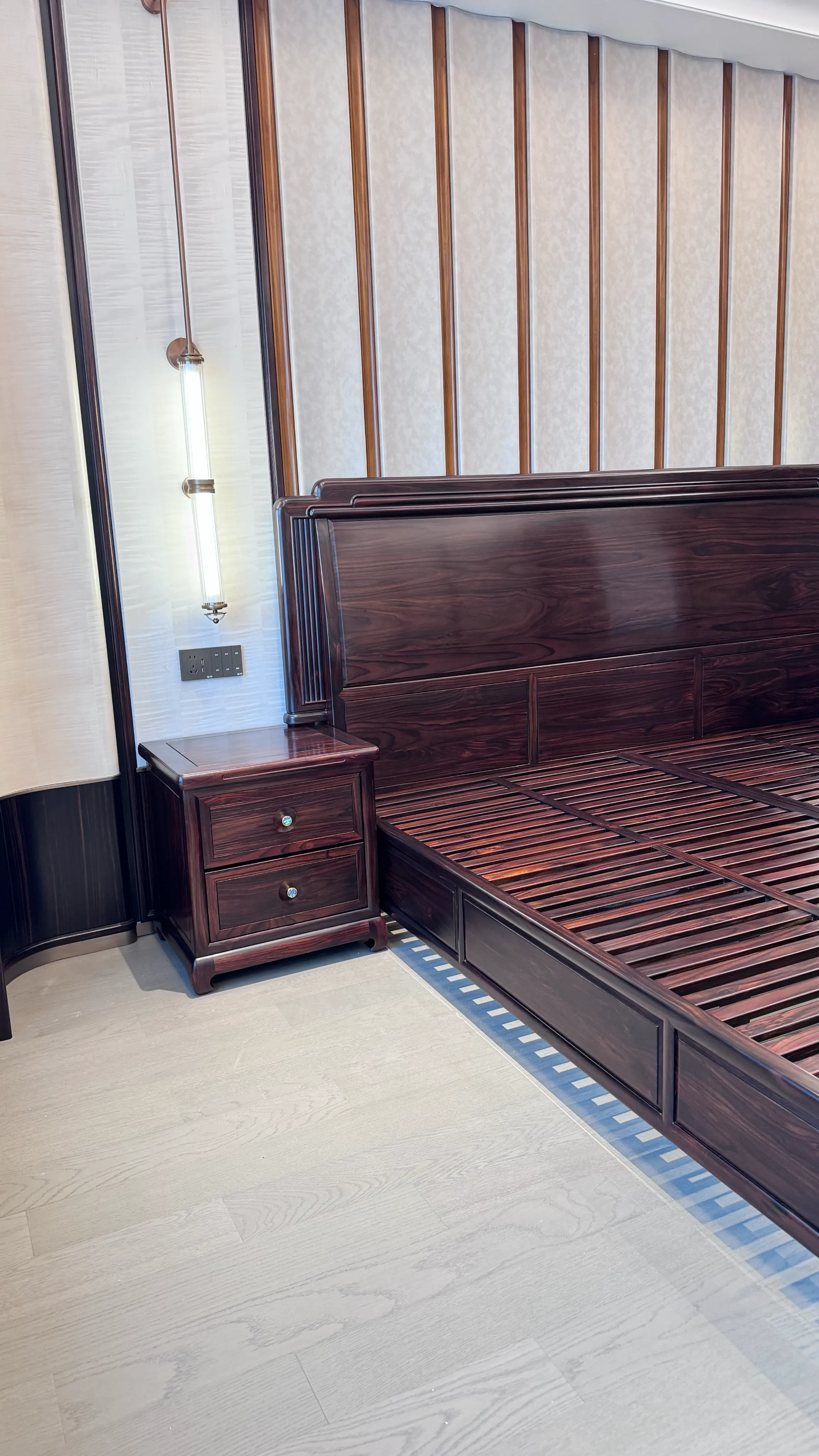 送货安装完成之后,黄总反馈,家具和预期完全一致,材质纹理清晰,榫卯结构扎实,两套房子分别呈现出沉稳和雅致的不同风格,朋友来了都称赞有档次,后续自己的会所装修,还是会选择这里。从这个案例就能看出来,就算是远程定制,工厂的服务也能跟上,从出方案到送货安装,全流程都不用客户多操心。
